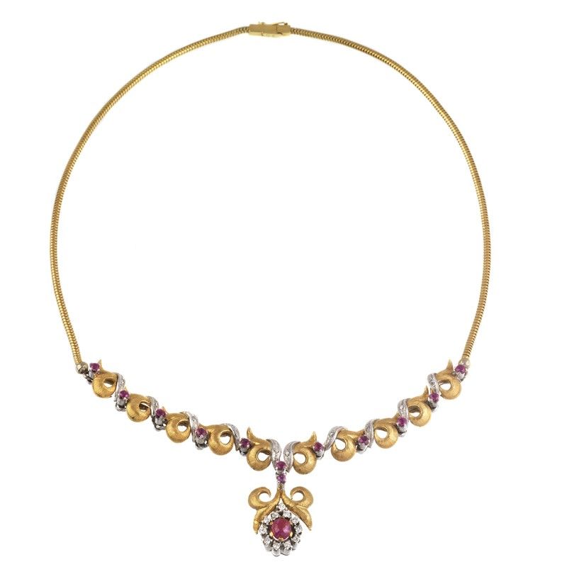 RUBY AND DIAMOND GARLAND NECKLACE IN 18KT TWO TONE GOLD
