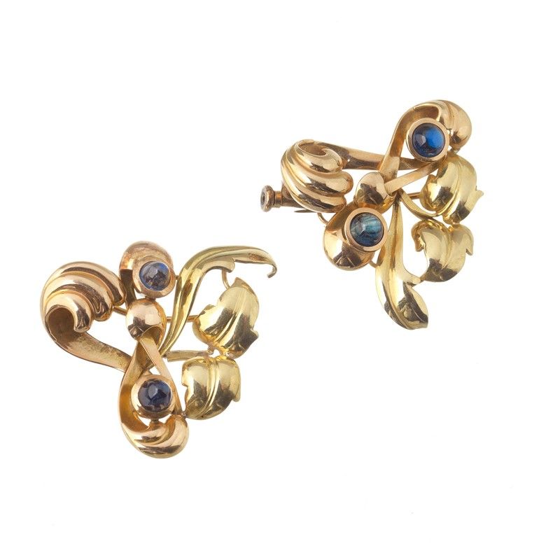 PAIR OF BRANCH-SHAPED BROOCHES IN 18KT YELLOW AND ROSE GOLD