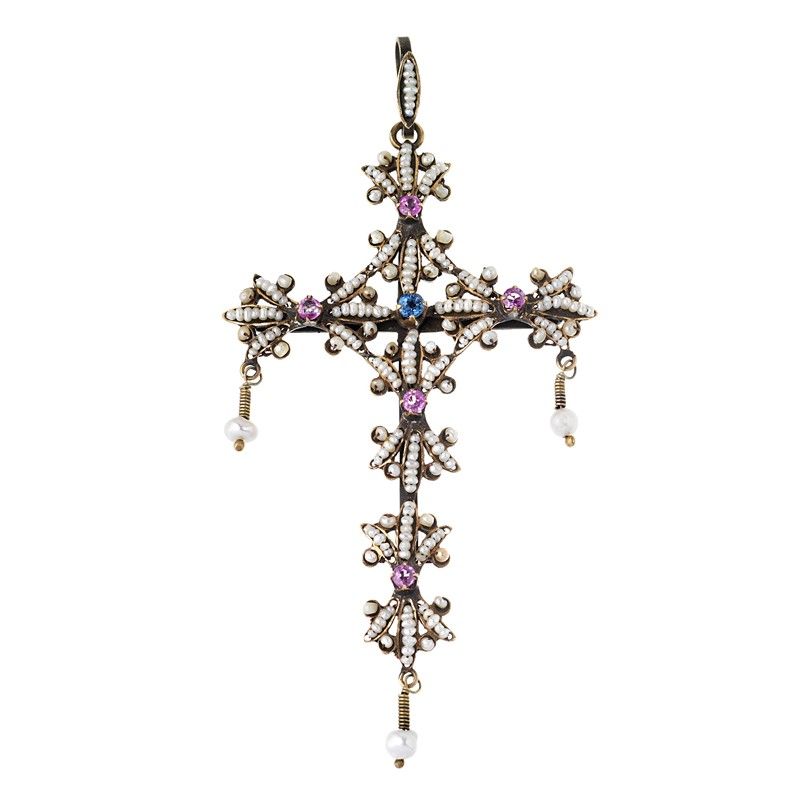GERARDO SACCO CROSS-SHAPED PENDANT AND A BROOCH IN GOLD AND METAL