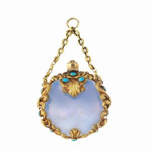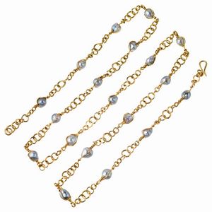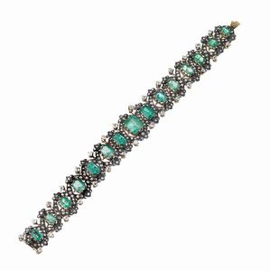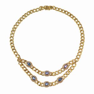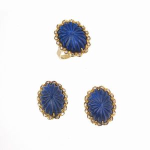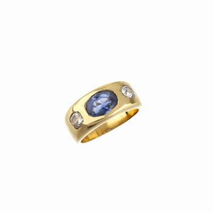 ANELLO CON ZAFFIRO E DIAMANTI in oro giallo satinato 18kt, impreziosito al centro da uno zaffiro taglio ovale [..]