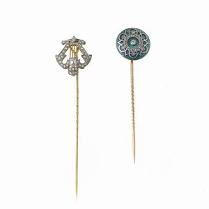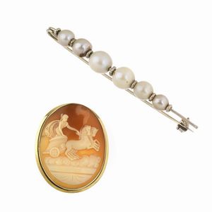 BRACCIALE A CATENA in oro a basso titolo, con al centro un motivo a intreccio impreziosito da microperle (una [..]