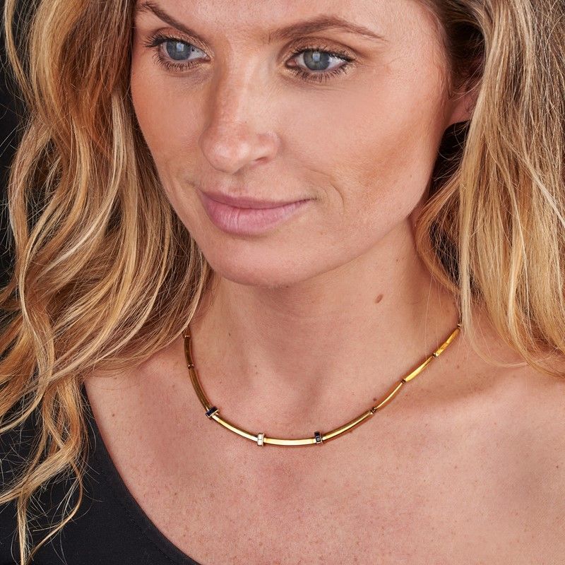 SAPPHIRE AND DIAMOND SEGMENT NECKLACE IN 18KT YELLOW GOLD