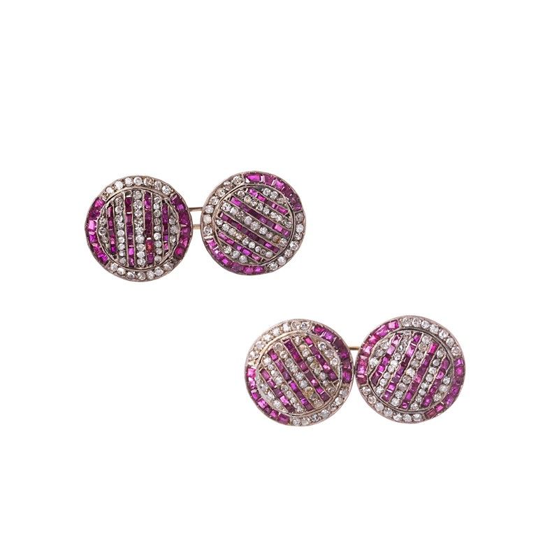 RUBY AND DIAMOND DISC-SHAPED CUFFLINKS IN SILVER