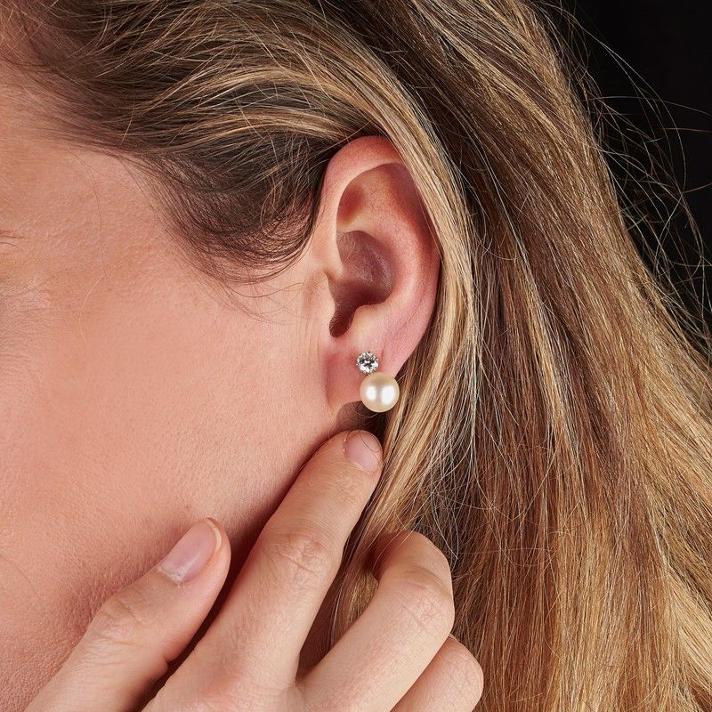 PEARL AND DIAMOND EARRINGS IN 18KT WHITE GOLD