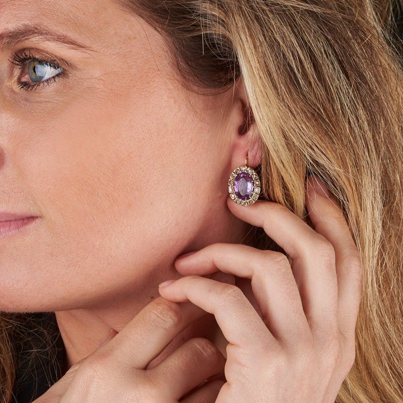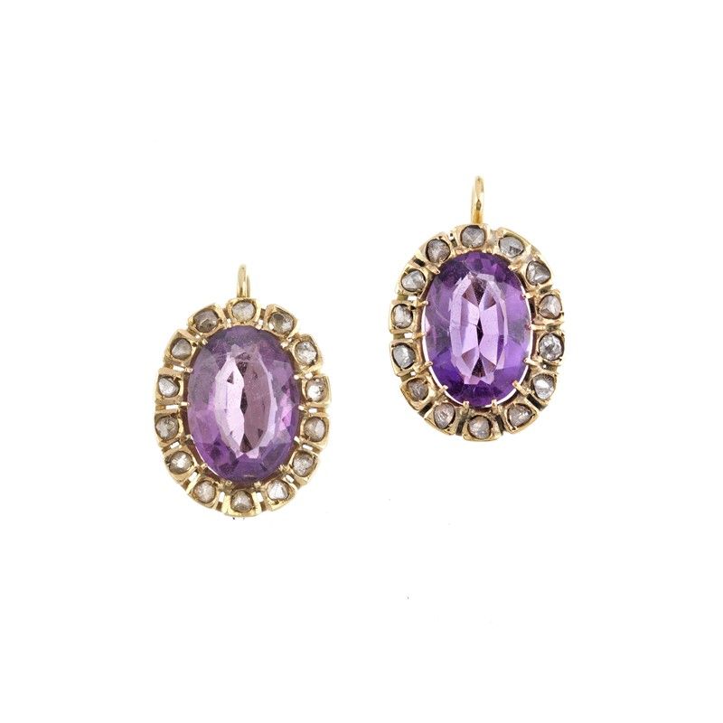 PAIO DI ORECCHINI FLOREALI CON AMETISTE E DIAMANTI