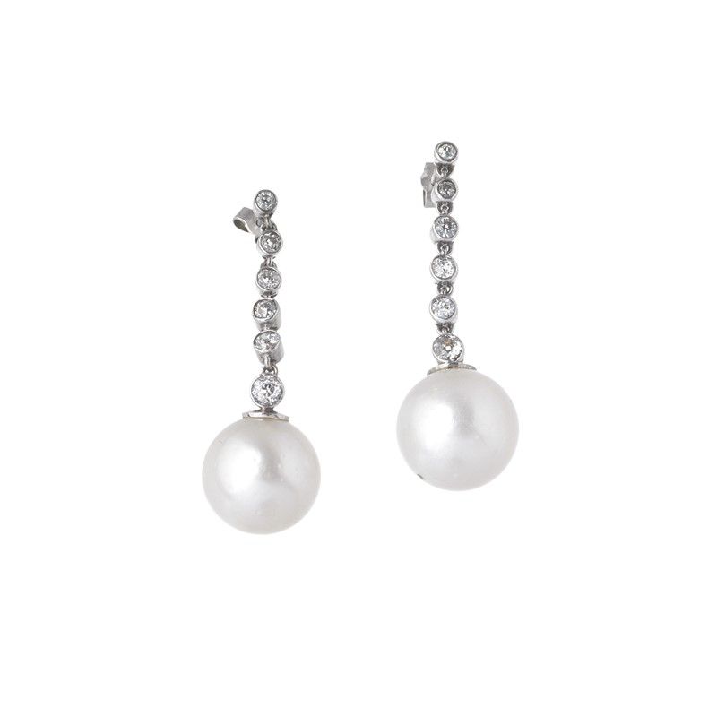 PAIO DI ORECCHINI PENDENTI CON PERLE E DIAMANTI