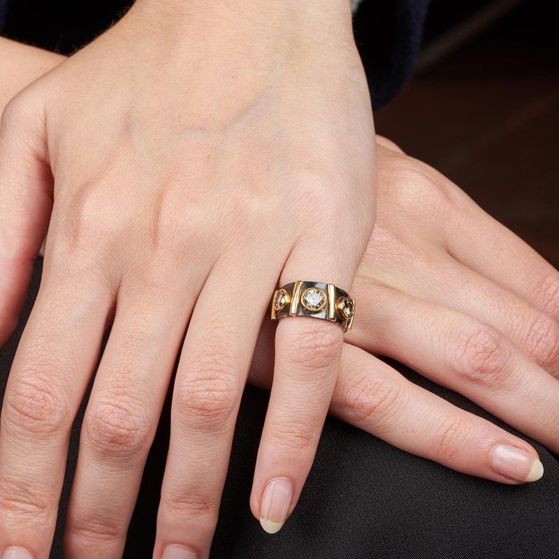 SMALL DIAMOND RING IN 18KT YELLOW GOLD AND STEEL