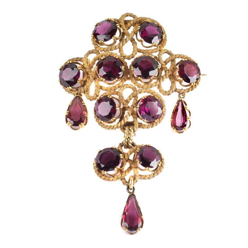 SEMIPRECIOUS STONE BROOCH IN 18kT YELLOW GOLD