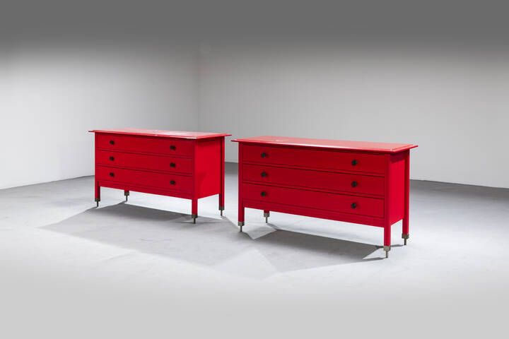 Struttura in legno laccato piano in vetro e particolari in ottone. Prod. Sormani anni '60 H. cm 80 5x144x54 Difetti