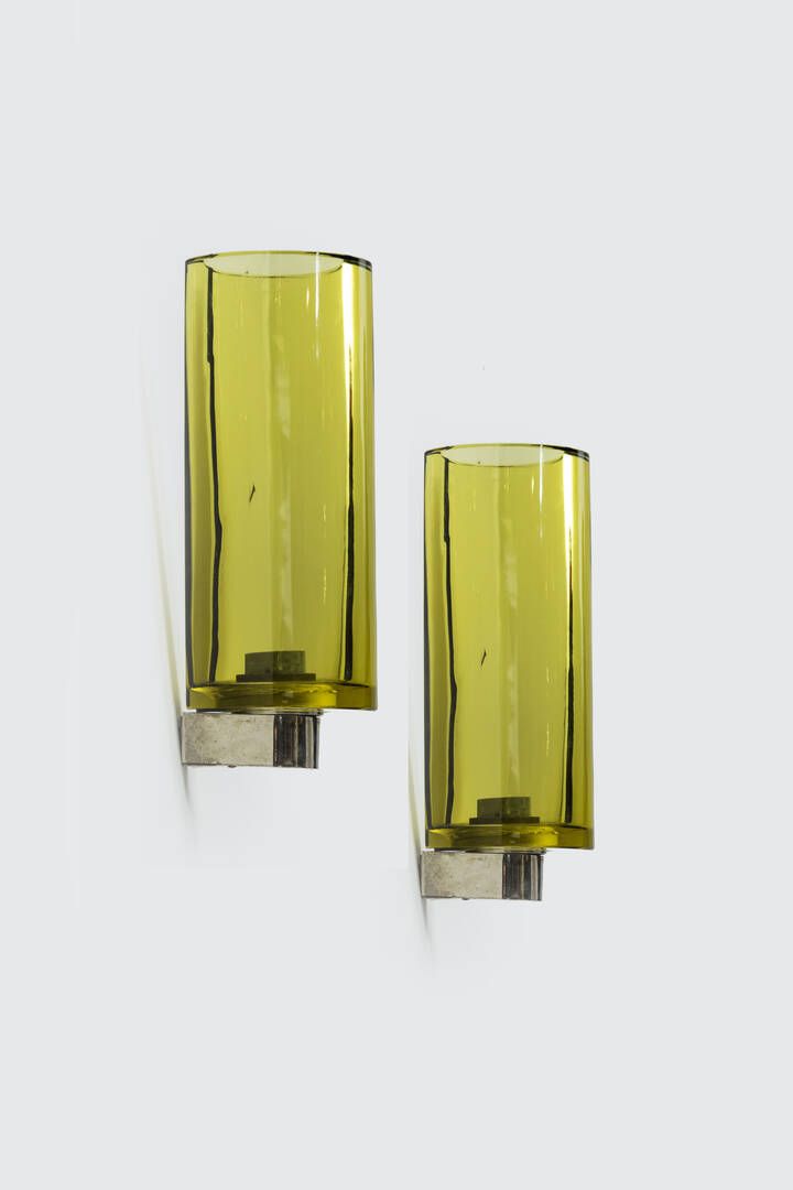 Struttura in metallo diffusore in vetro colorato di forte spessore. Anni '70 h cm 33 5x12x14