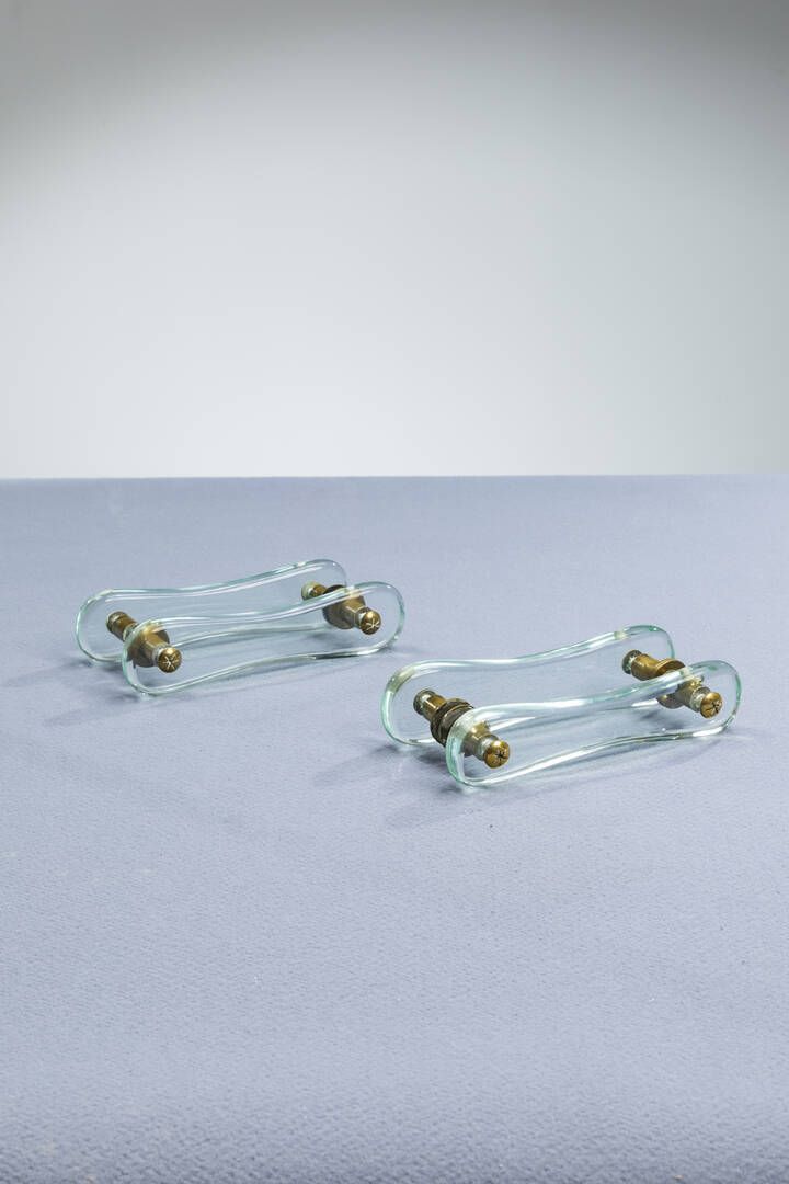 Coppia di maniglie Vetro e particolari in ottone. Anni 50 cm 25x12x6