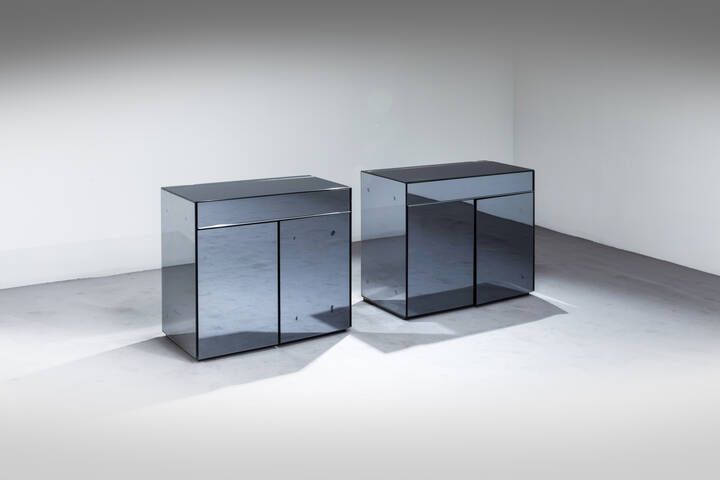 Struttura in legno rivestita con vetro specchiato Prod. FAI internazionale anni '70 cm 78x90x45 cm 78x100x45 Seccatura del vetro