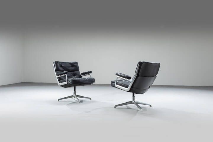 Struttura in alluminio imbottitura rivestita in pelle nera. Anni '60 cm 78 5x73x78 Piccoli difetti