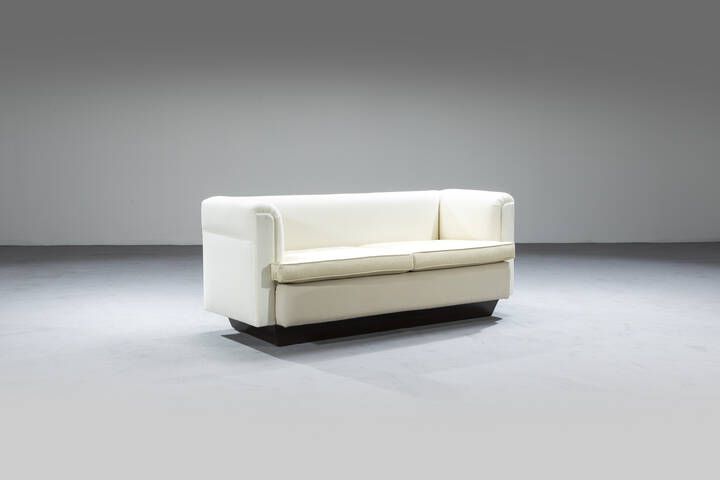 Struttura in legno imbottitura rivestita in seta di color oro. Rivestimento originale. Anni '30 cm 70x168 5x72 Bibl.: Quota 110. Villa in Roma alla Camilluccia Domus n. 97 gennaio 1936 pp. 2-13; M. Pisani Architetture di Marcello Piacentini. Le opere maestre Clear Roma 2004 pp. 94-108