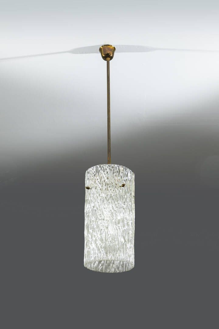 Struttura in metallo elementi in vetro di Murano e particolari in ottone. Anni '70 h cm 100x20