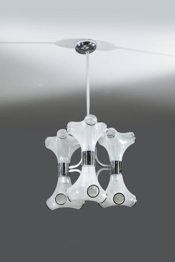 Struttura in metallo diffusori in vetro pulegoso. Anni '60 h cm 100x50 Rottura di un elemento in vetro