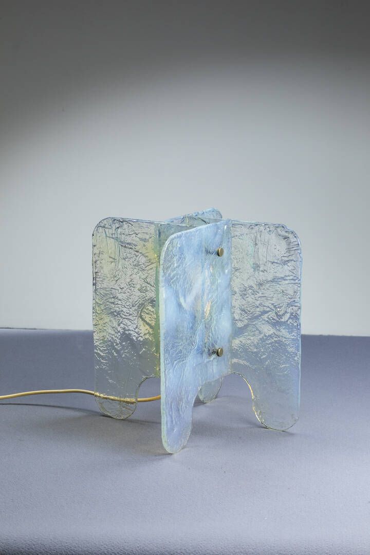 Struttura in metallo cromato ed elementi in vetro di Murano. Prod. Mazzega anni '70 h cm 41x41x41