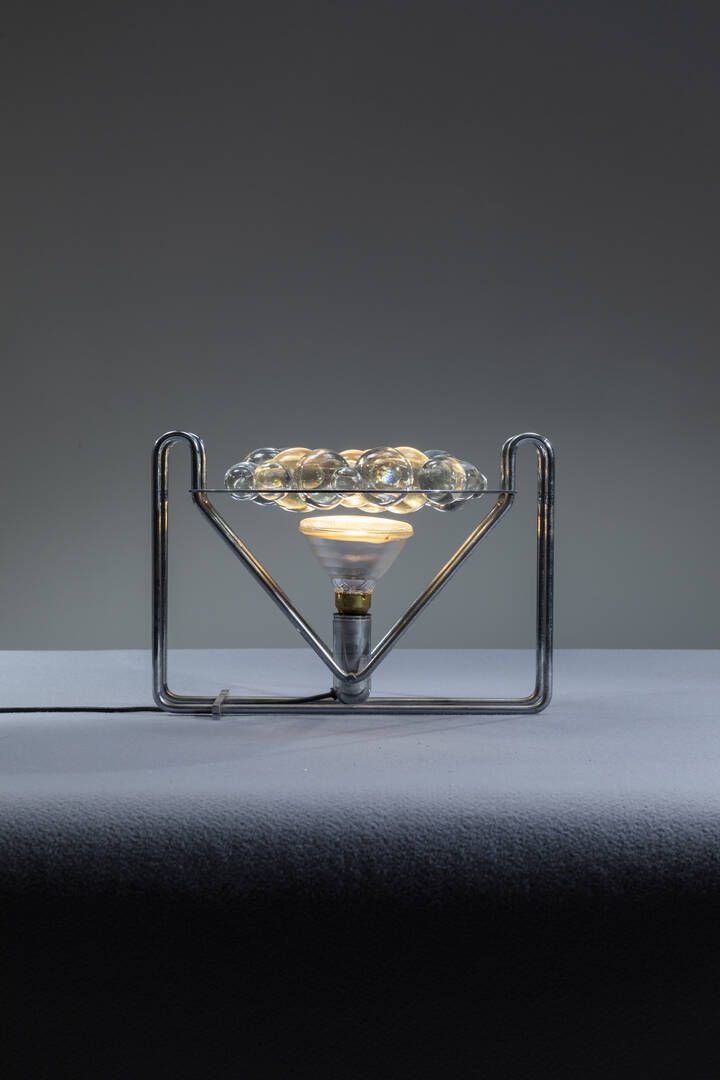 Struttura in acciaio ed elementi sferici in vetro di forte spessore. Anni '70 h cm 30x42x35
