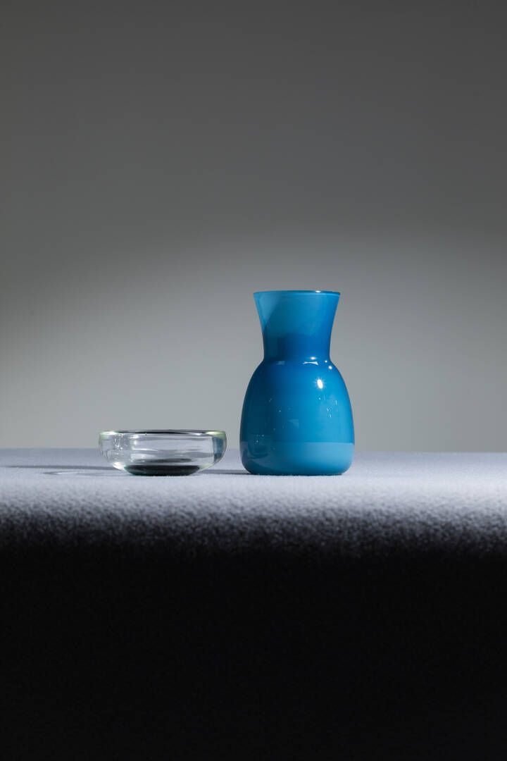 Vaso in vetro incamiciato e svuotatasche in vetro trasparente. Firmati e datati Prod. Venini Italia 1984 e 1986 cm19x12 cm 4x12 5