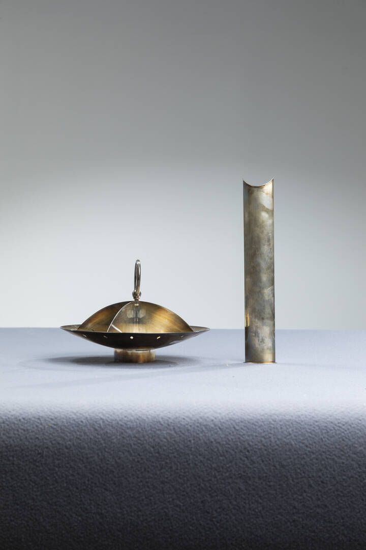 Lotto composto da un portacaramelle e un vaso solifiori in metallo argentato. Marchio [..]