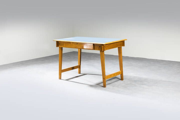 Scrivania in legno di faggio piano in laminato colorato. Anni '50 cm 79x124x74