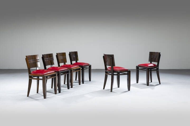 Struttura in legno impiallacciato verniciato schienale in legno curvato e imbottitura rivestita in pelle. Anni '40 cm 77x46x45