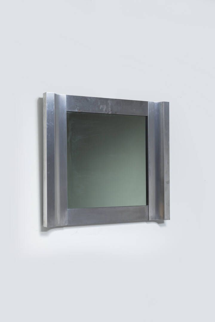 Specchio con cornice in alluminio inox. Etichetta del Produttore Prod. Il Picchio Ceramica d'Arte anni '70 cm 80x90