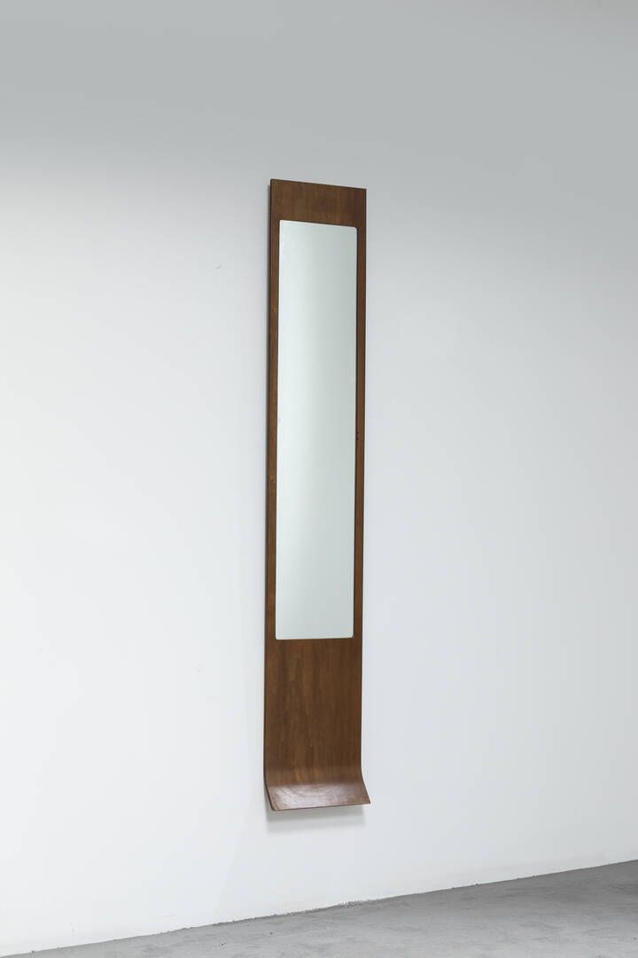 Struttura il legno curvo e vetro specchiato. Anni '70 cm 178x30 Piccoli difetti