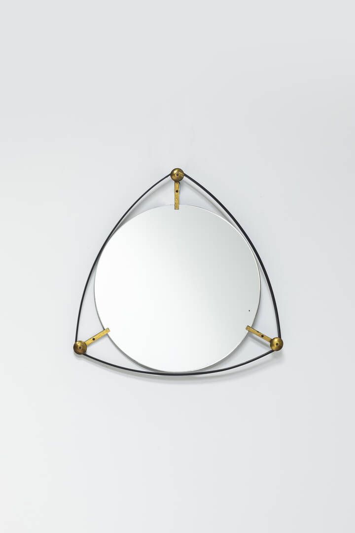 Struttura in metallo verniciato vetro specchiato e particolari in ottone. Anni '70 cm 65x63 5 Difetti