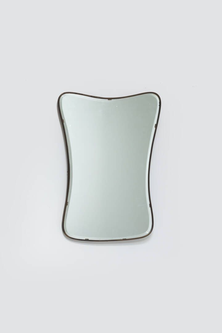 Bordo in ottone e vetro specchiato. Anni '50 cm 71x50