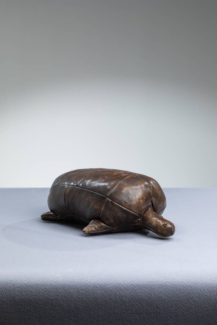 Tartaruga rivestita in cuoio. Anni '60 cm 16x58x31 Difetti