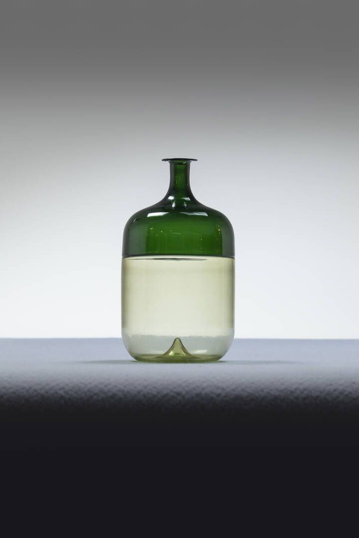 Vetro trasparente pagliesco e verde. Firmato a punta sotto la base Prod. Venini 1982 cm 24x14