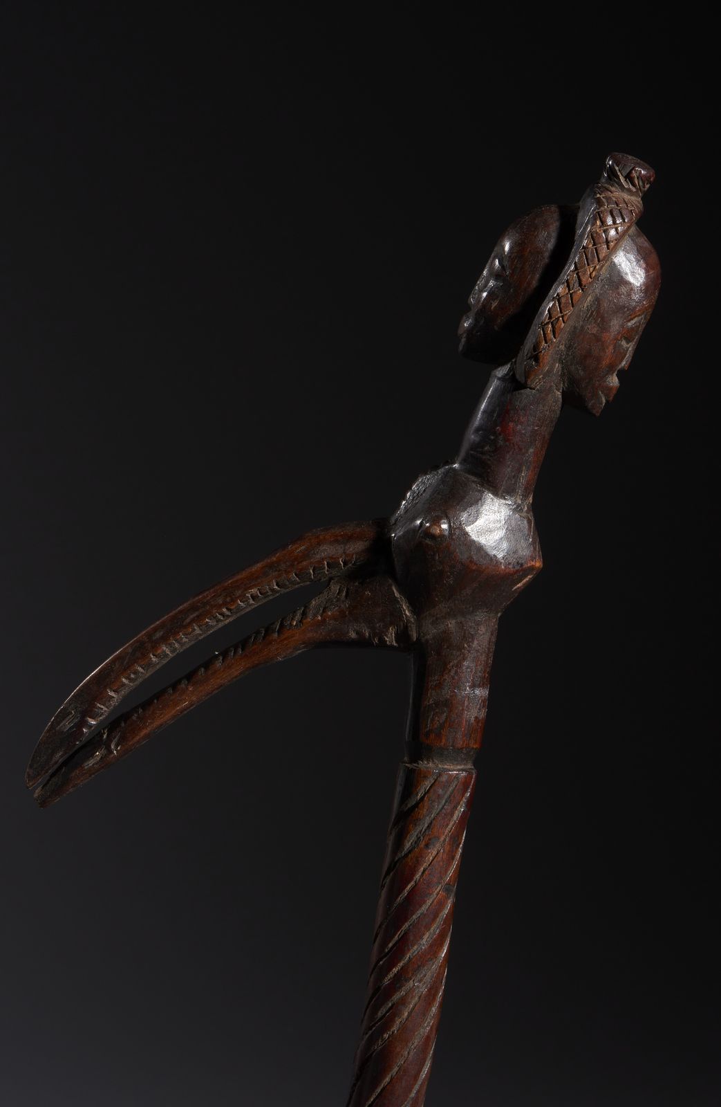 Nello stile di Bastone-insegna di rango con figure antropozoomorfe in legno duro [..]