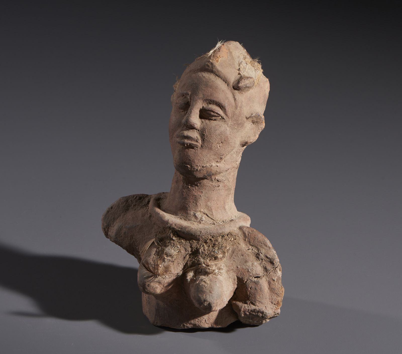 Nello stile di Frammento di busto antropomorfo in terracotta con materiale sacr [..]