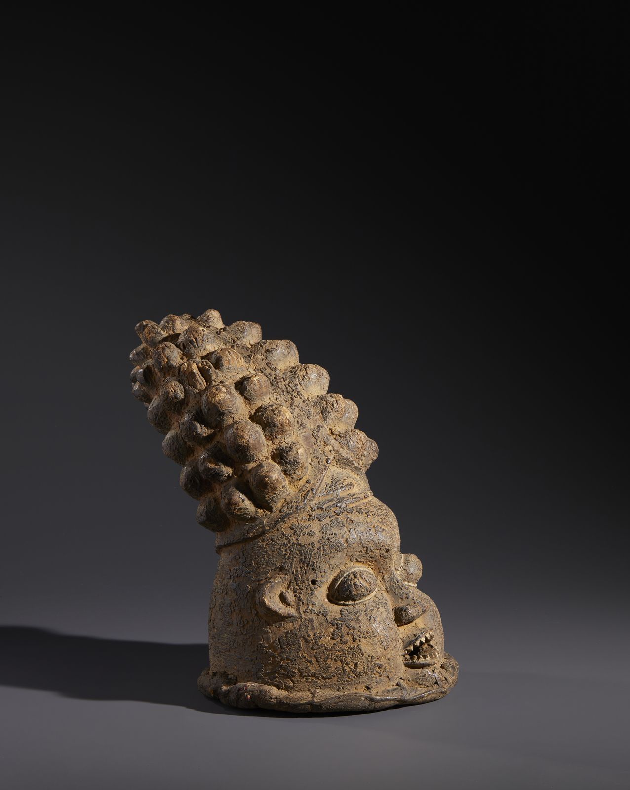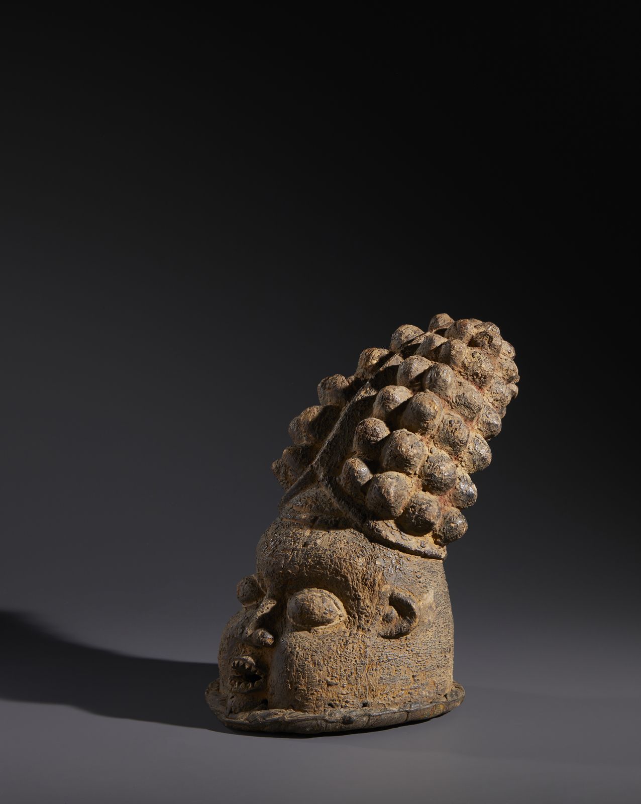 Nello stile di Maschera ad elmo in legno, tessuto, corda e pigmenti A patina cr [..]