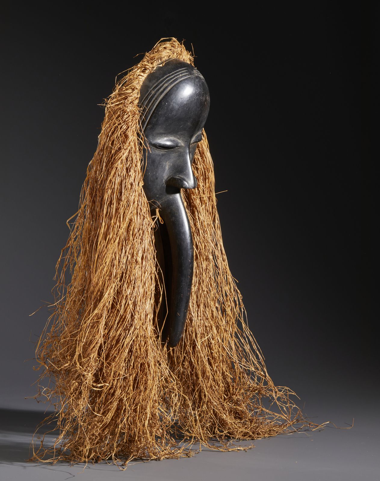 Nello stile di Maschera antropomorfa con becco in legno duro a patina nera e raf [..]