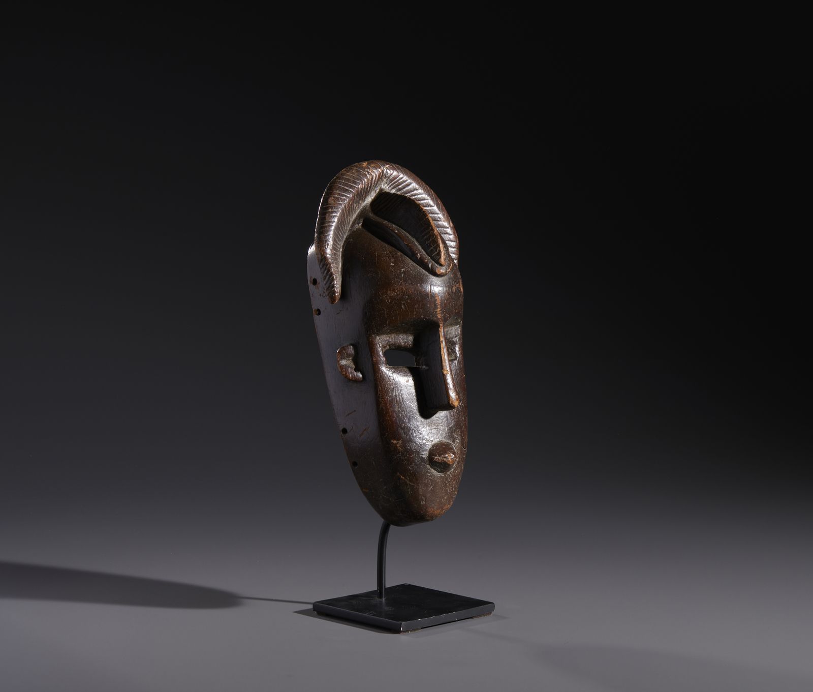 Nello stile di Maschera antropomorfa in legno duro a patina marrone