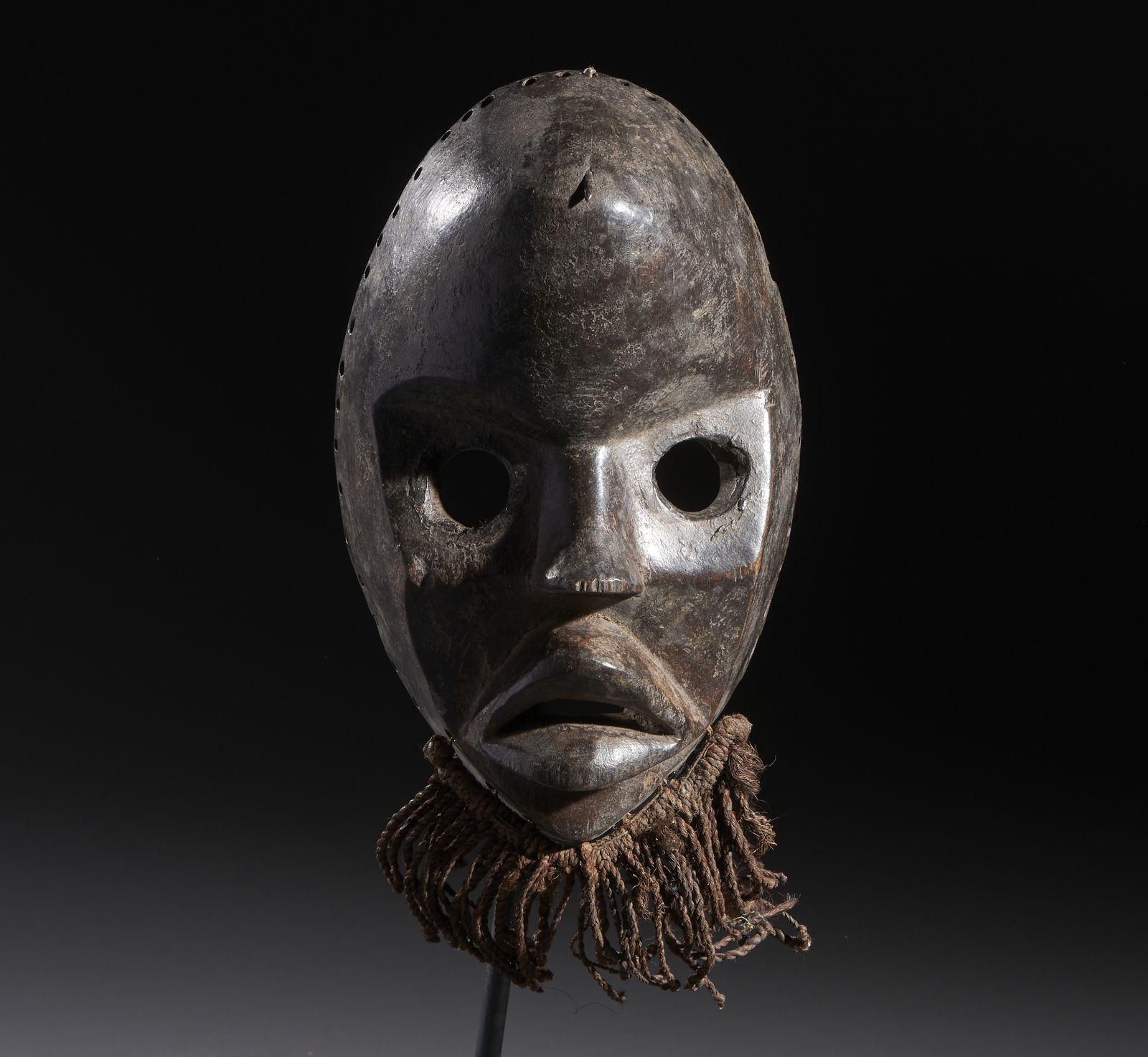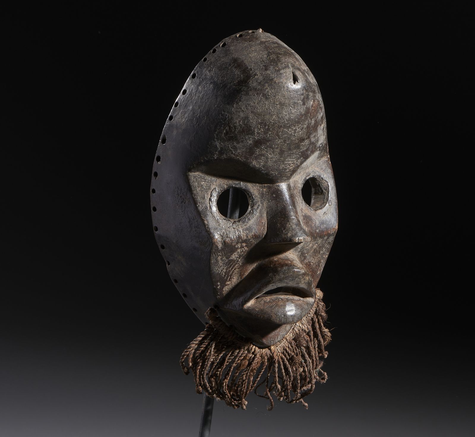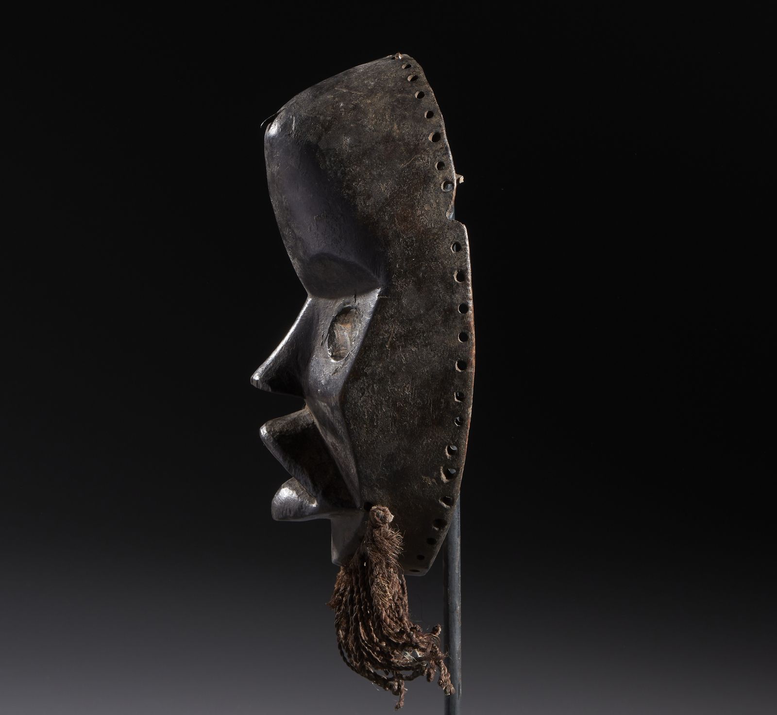 Nello stile di Maschera antropomorfa in legno duro a patina scura, metallo e fib [..]