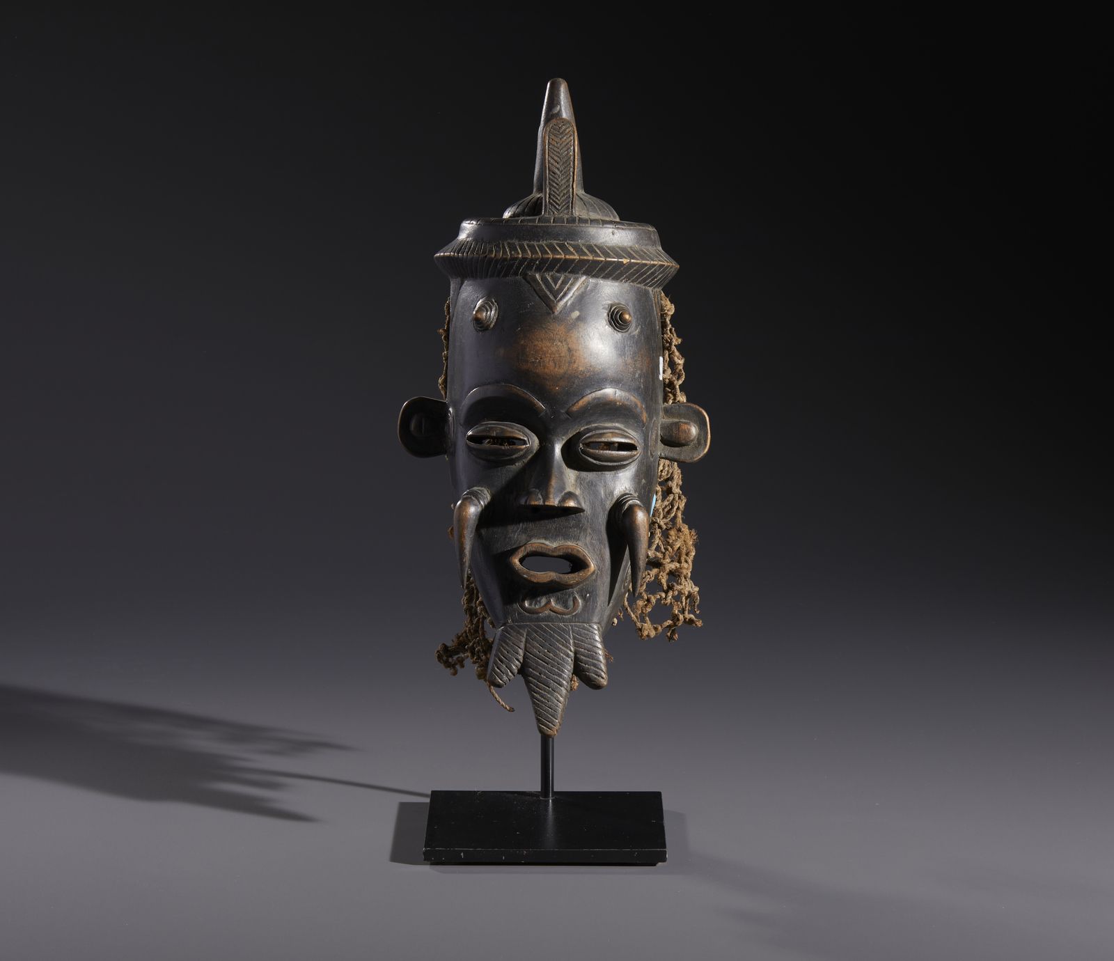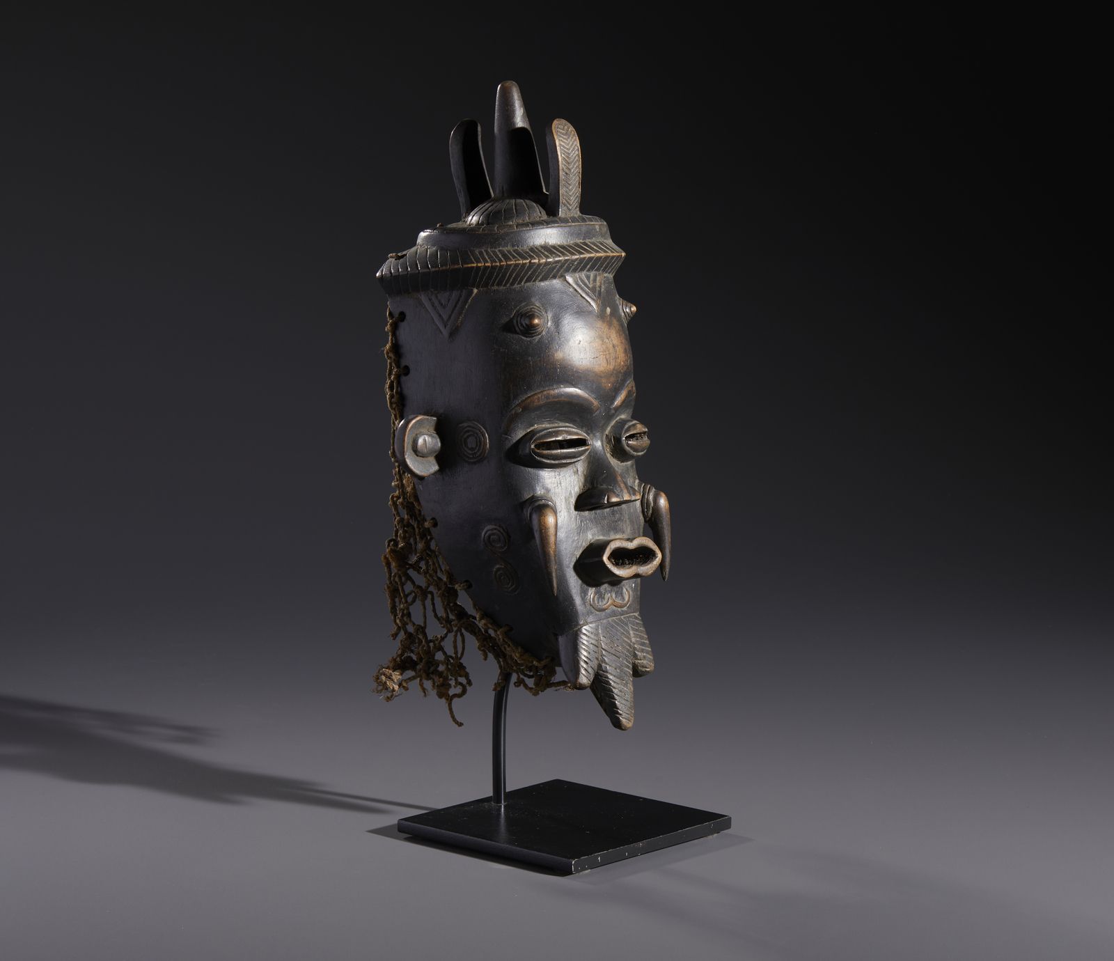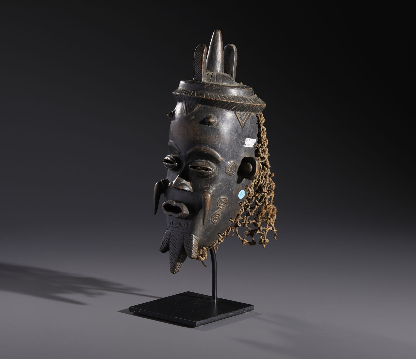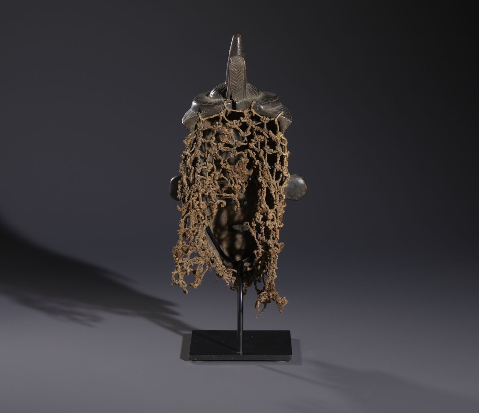 Nello stile di Maschera antropomorfa in legno a patina nera e fibre