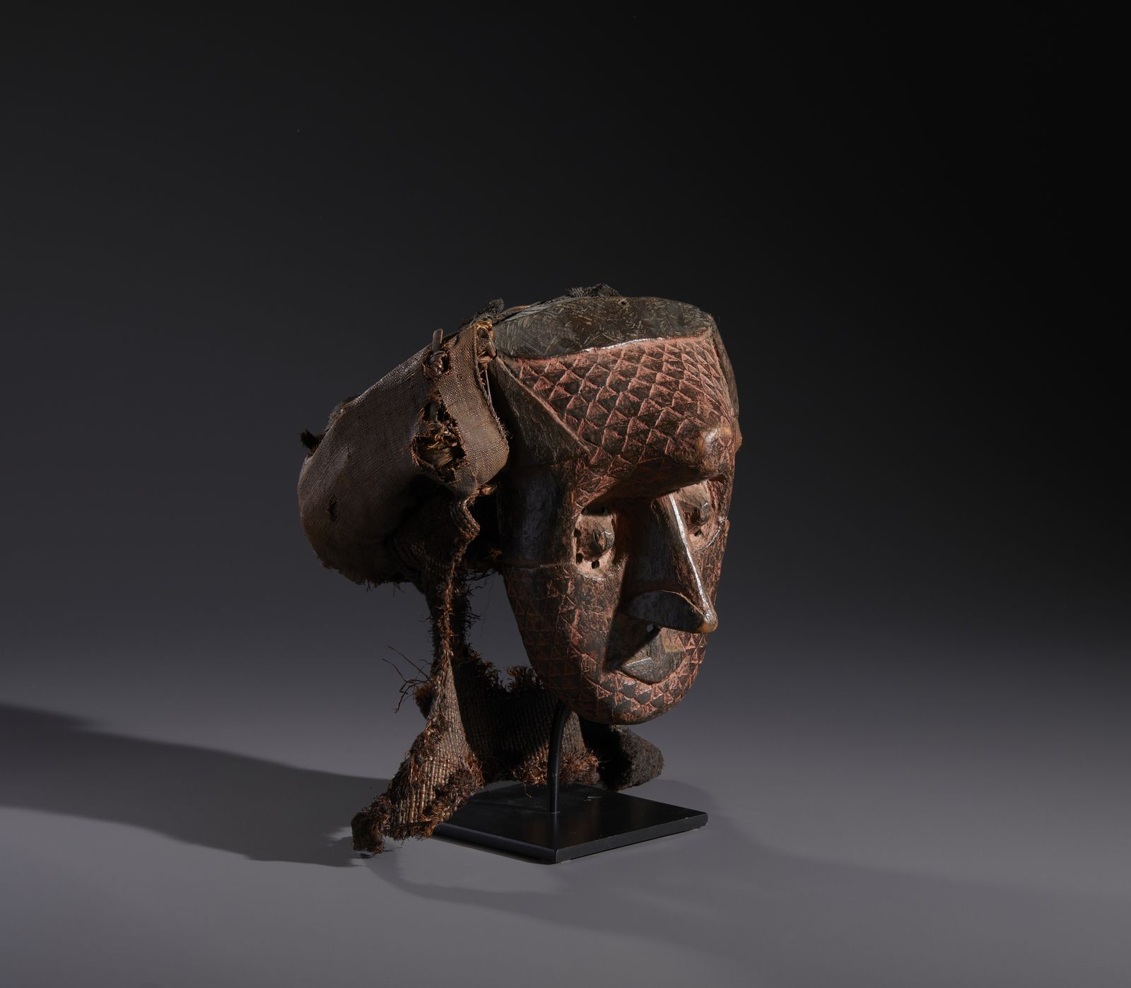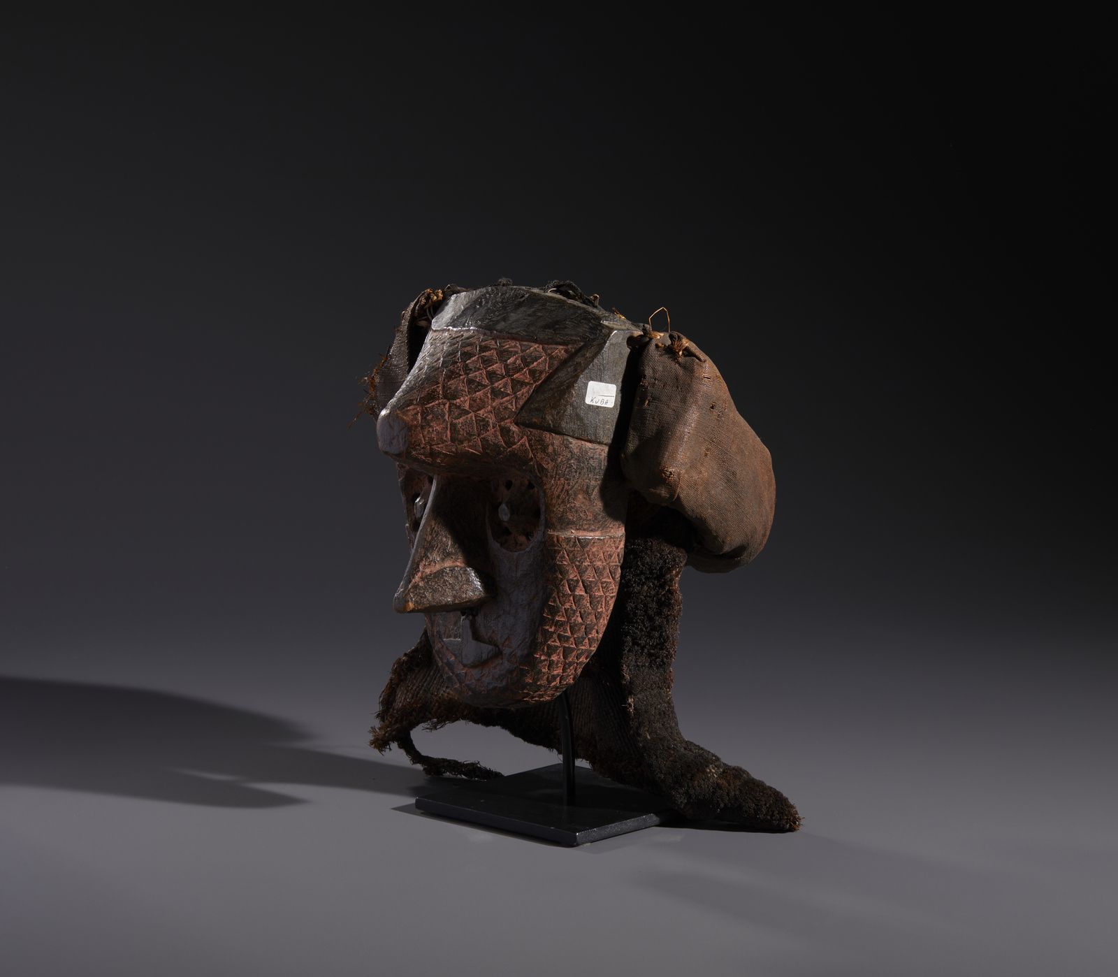 Nello stile di Maschera-copricapo antropomorfa in legno, rafia, tessuto e pigme [..]