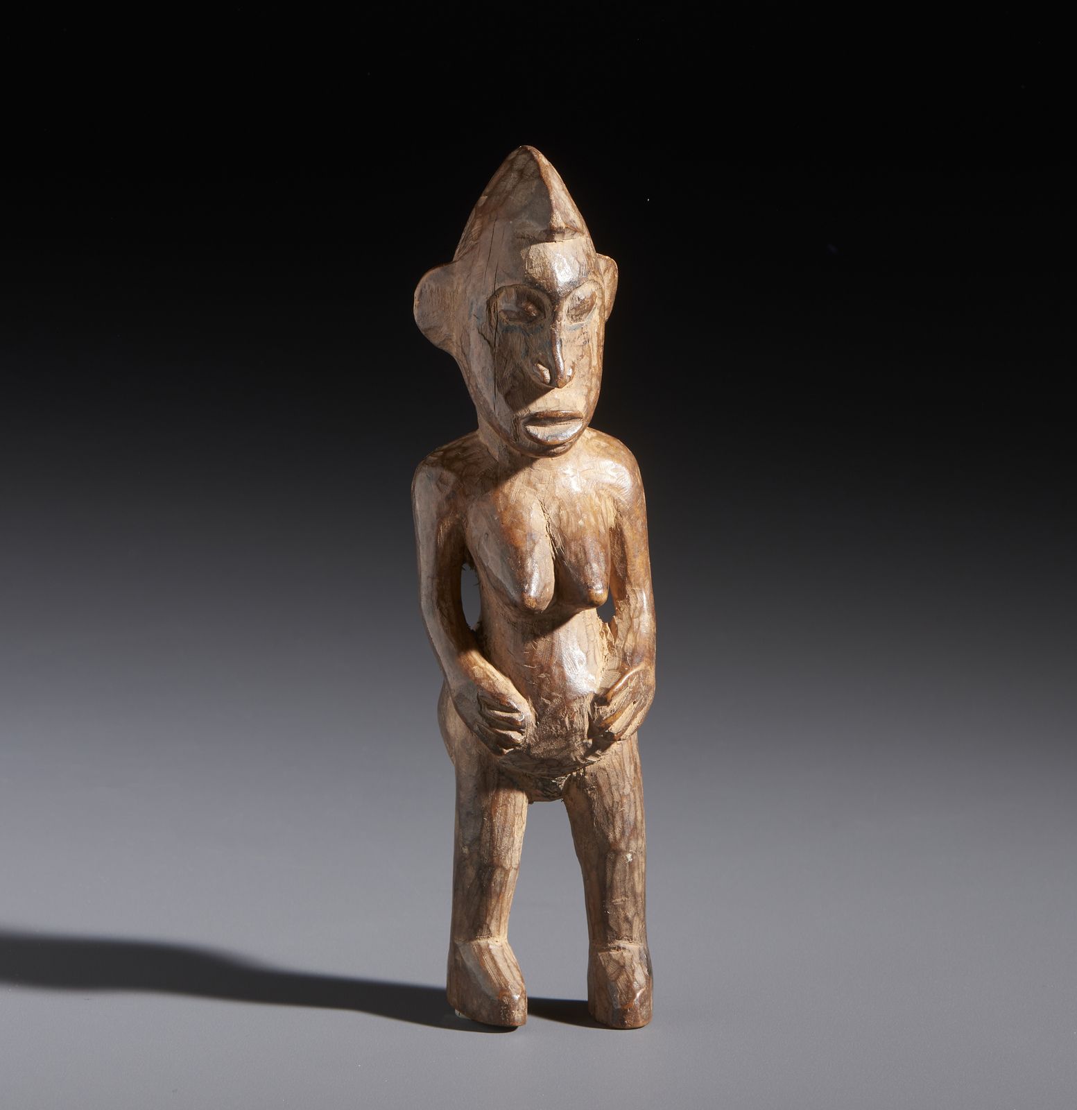 Nello stile di Piccola scultura antropomorfa femminile in legno duro a patina ma [..]