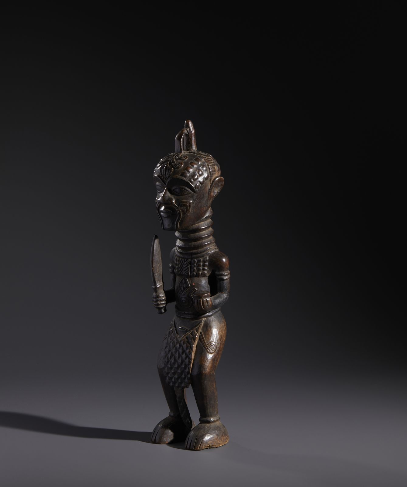 Nello stile di Scultura antropomorfa di dignitario in legno a patina scura