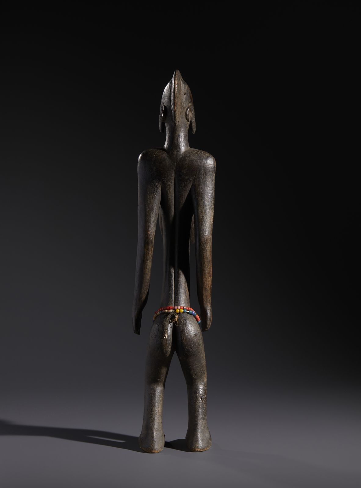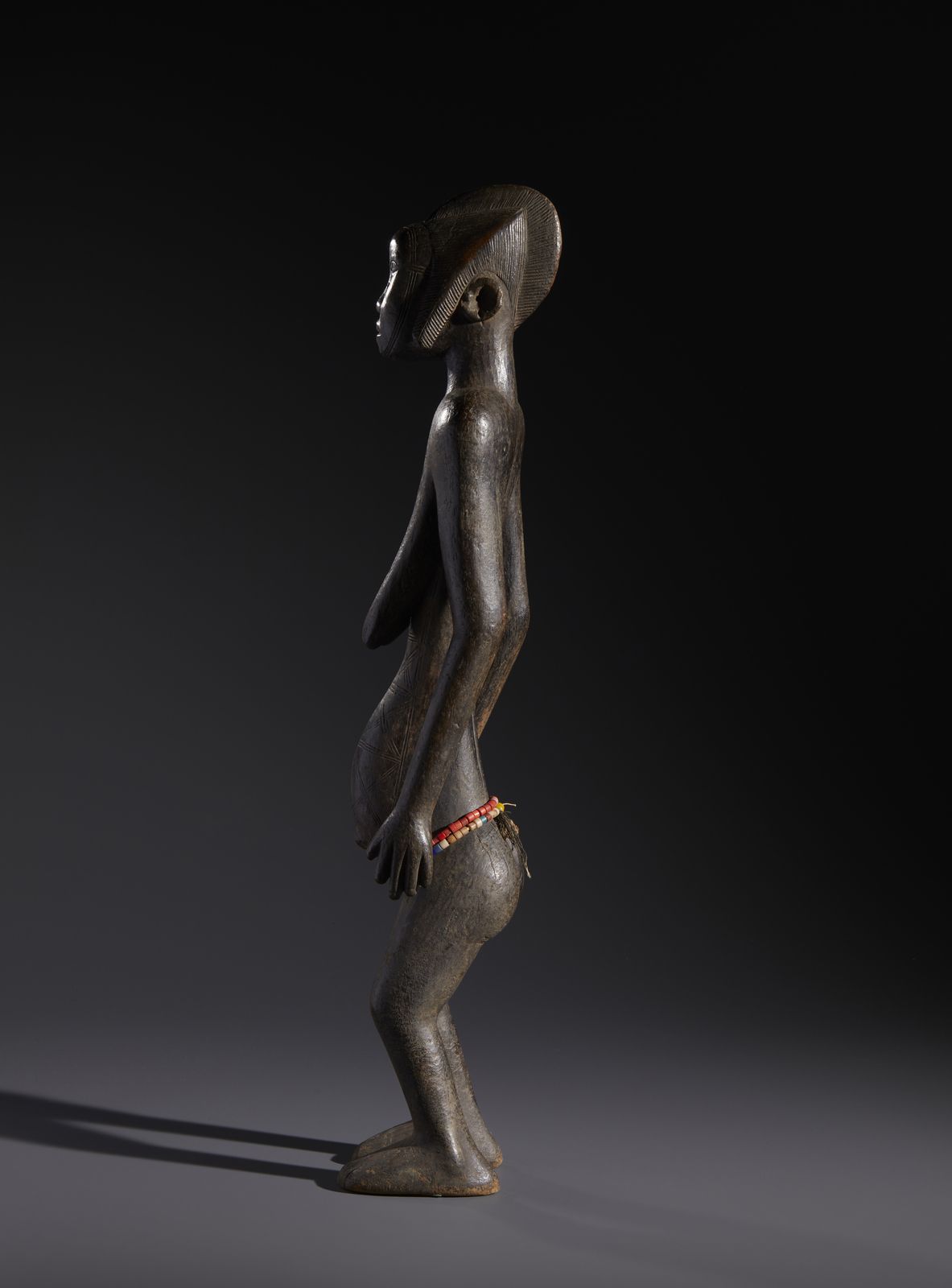 Nello stile di Scultura antropomorfa femminile in legno a patina scura e perline