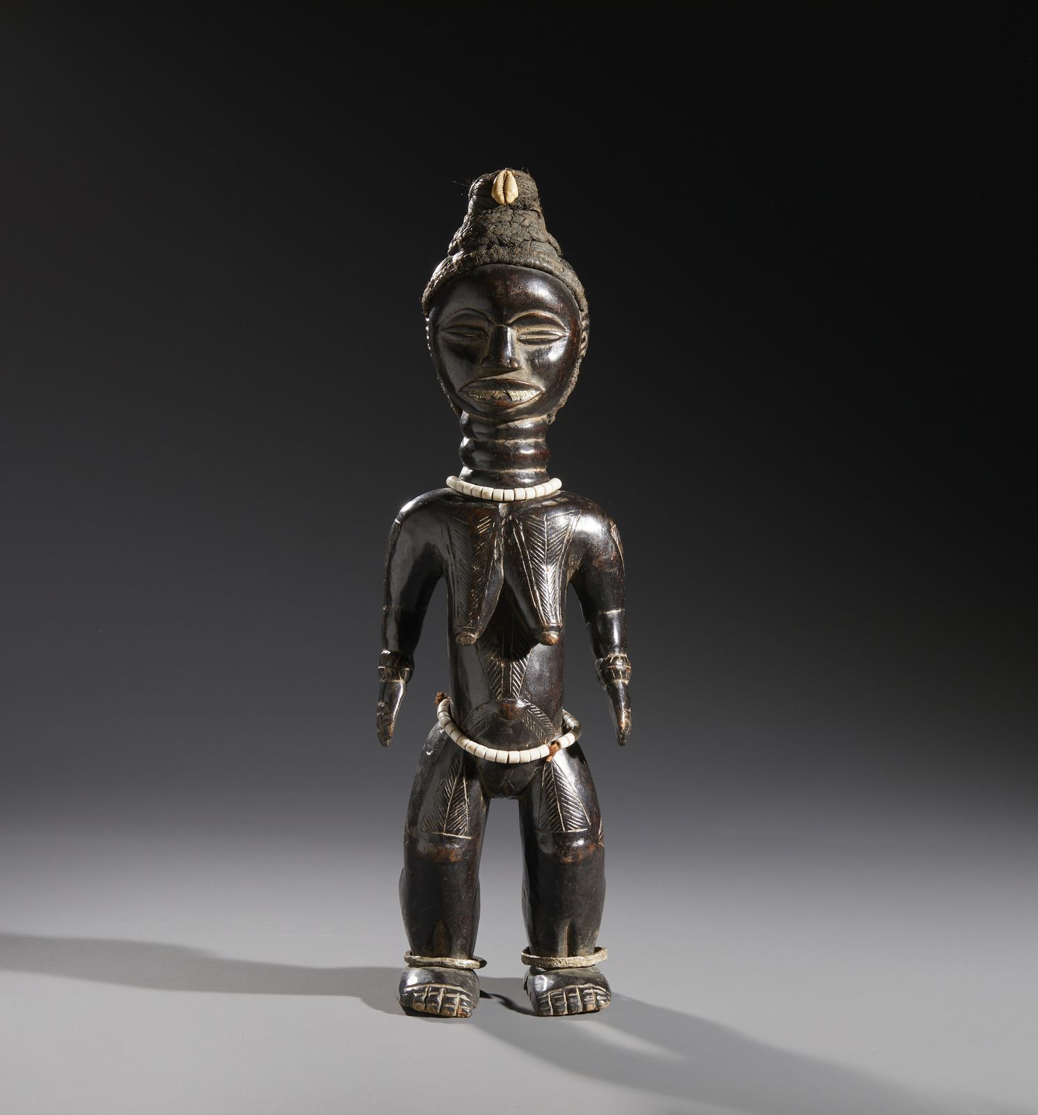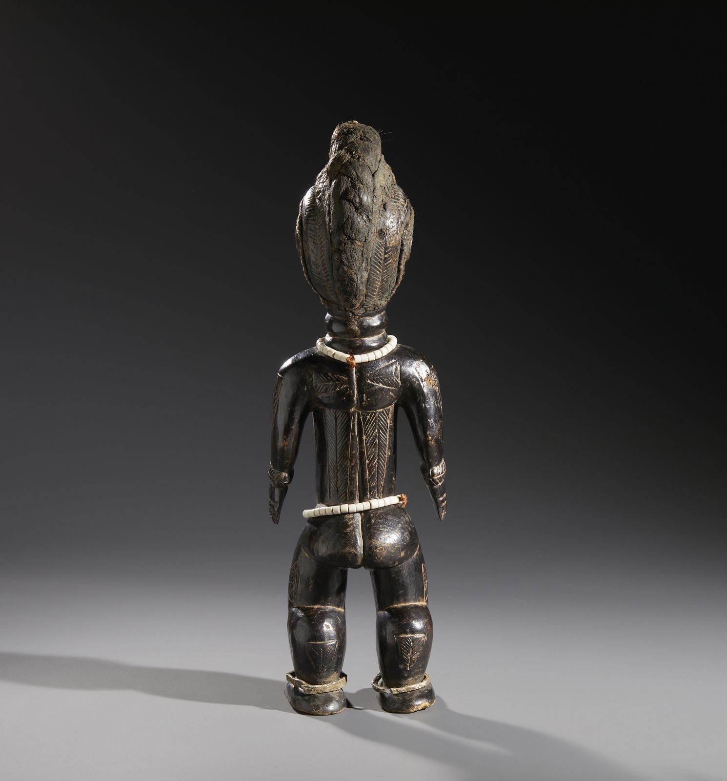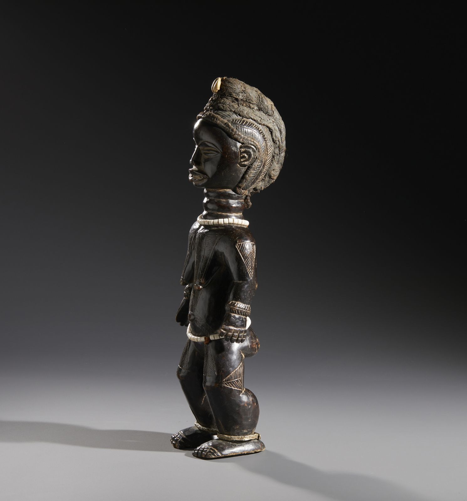 Nello stile di Scultura antropomorfa femminile in legno duro a patina nera, fibre, [..]