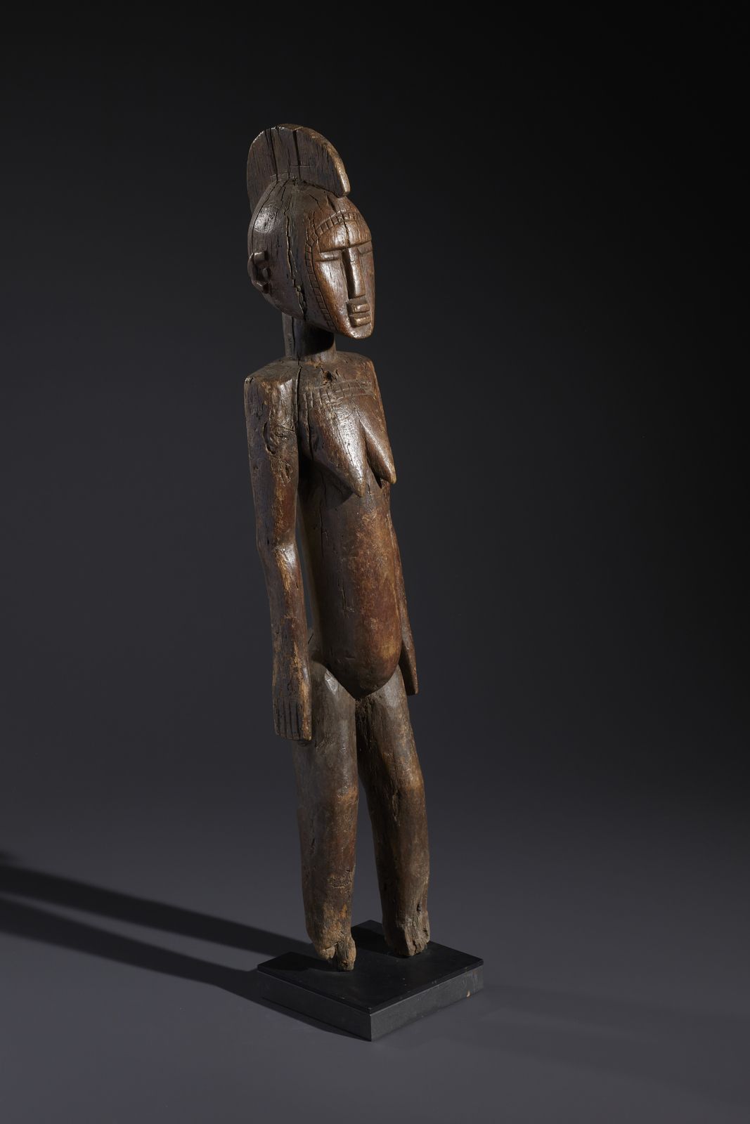 Nello stile di Scultura antropomorfa femminile in legno a patina marrone