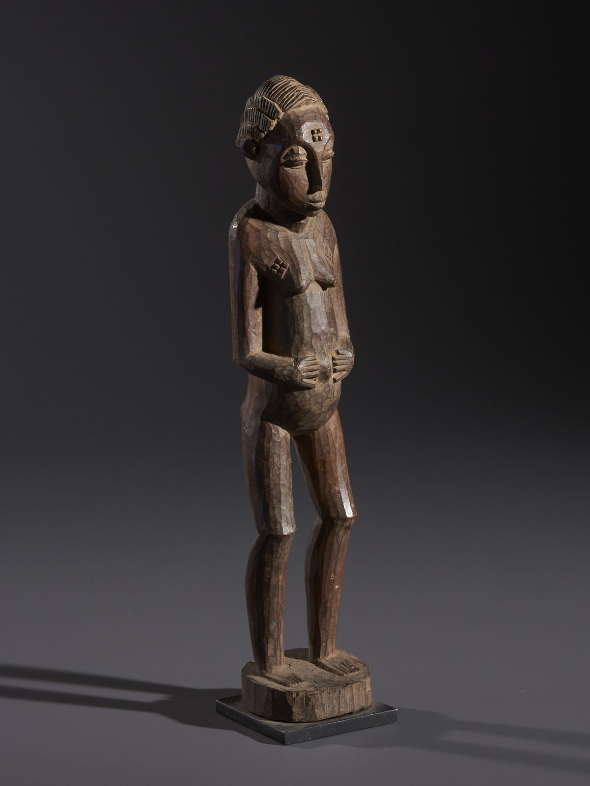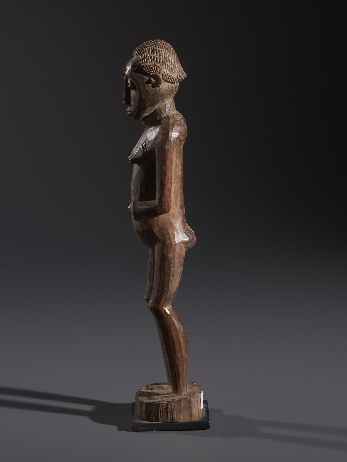 Nello stile di Scultura antropomorfa femminile in legno duro a patina marrone