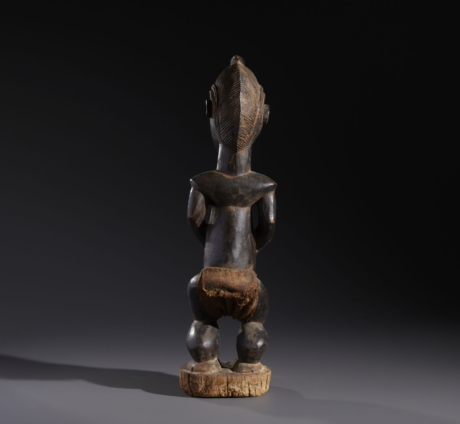 Nello stile di Scultura antropomorfa maschile in legno a patina scura e tessut [..]