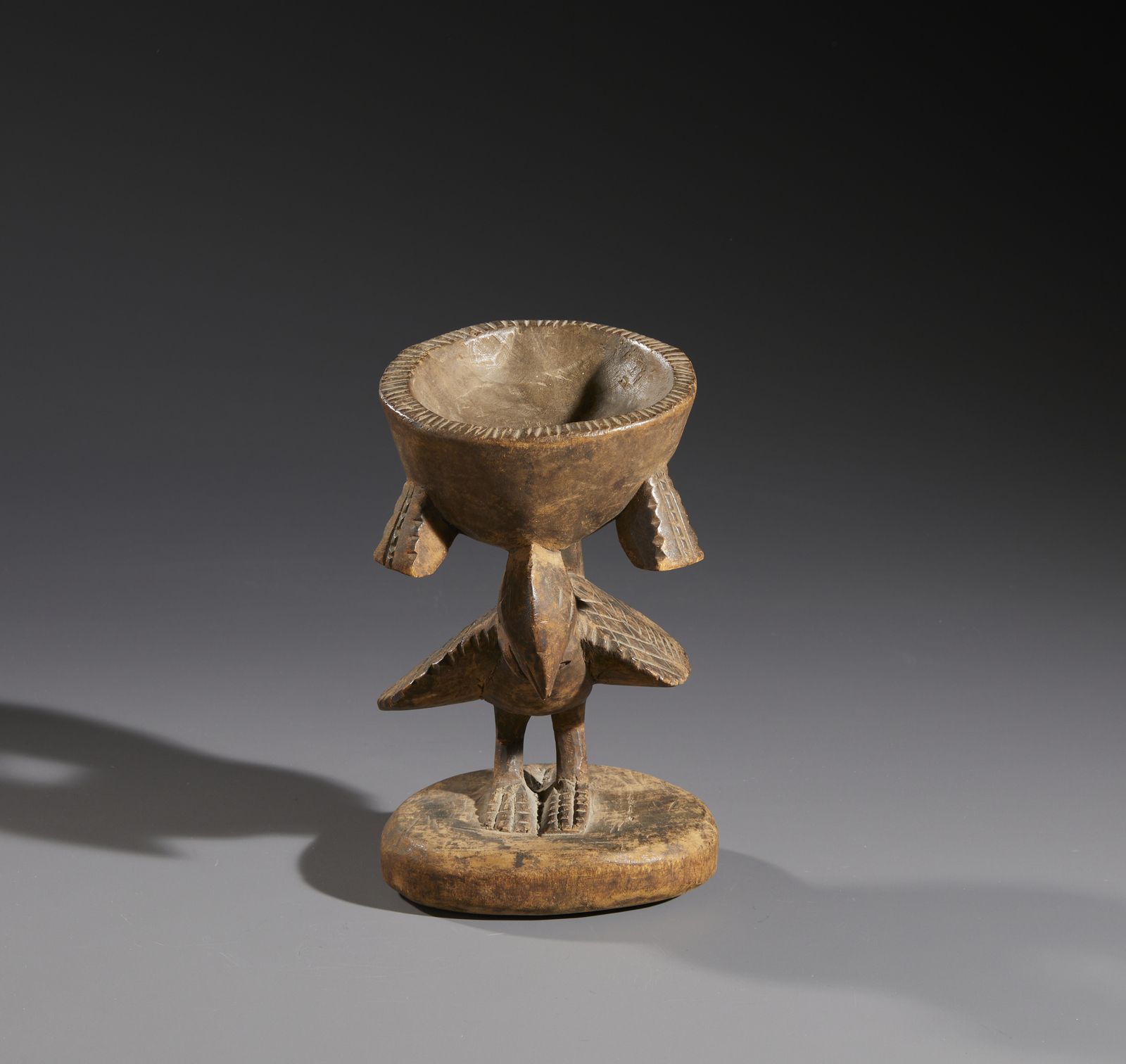 Nello stile di Scultura coppa con uccello Yoruba in legno duro a patina natural [..]