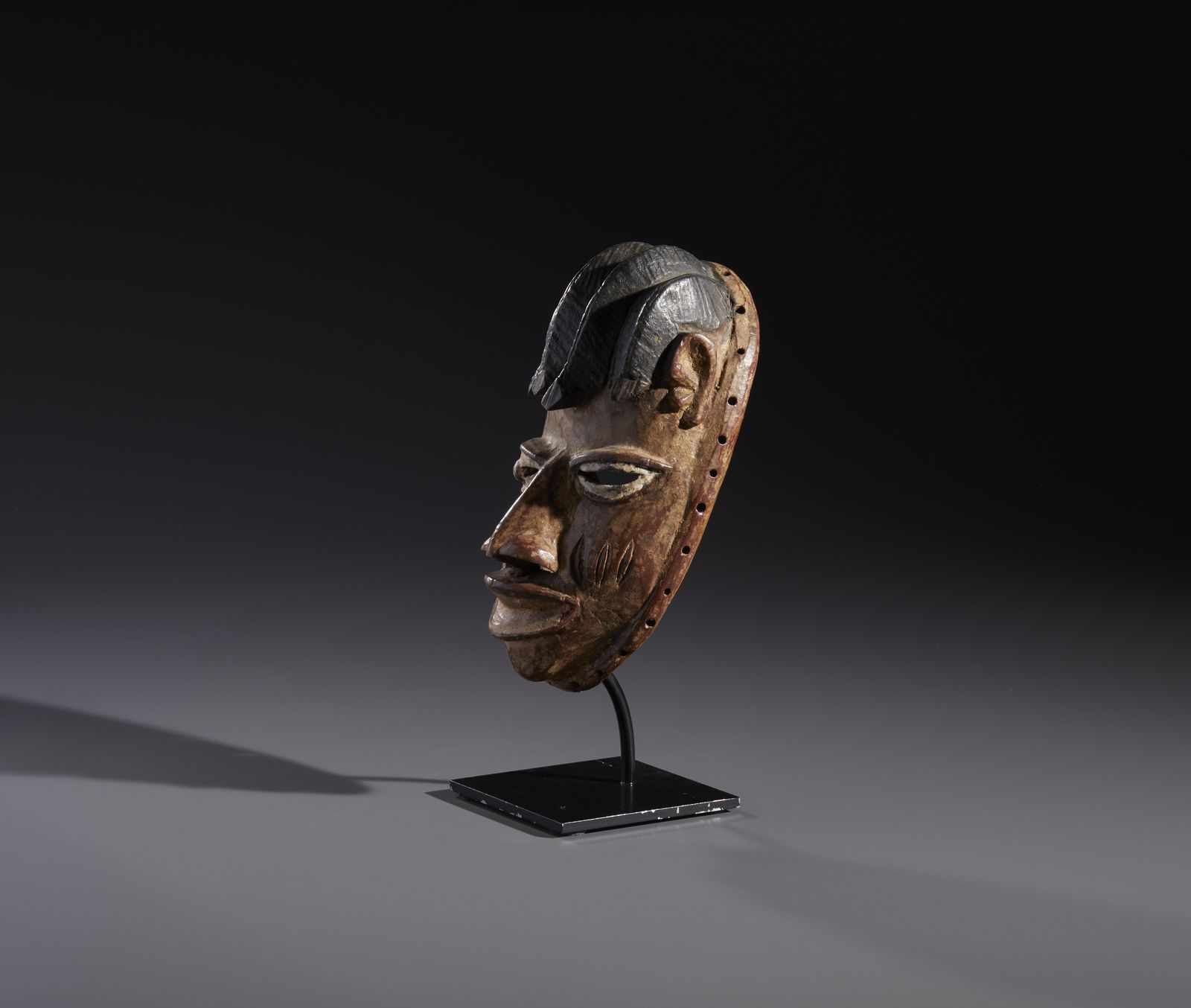 Nello stile diMaschera antropomorfa in legno a patina marrone e pigmenti