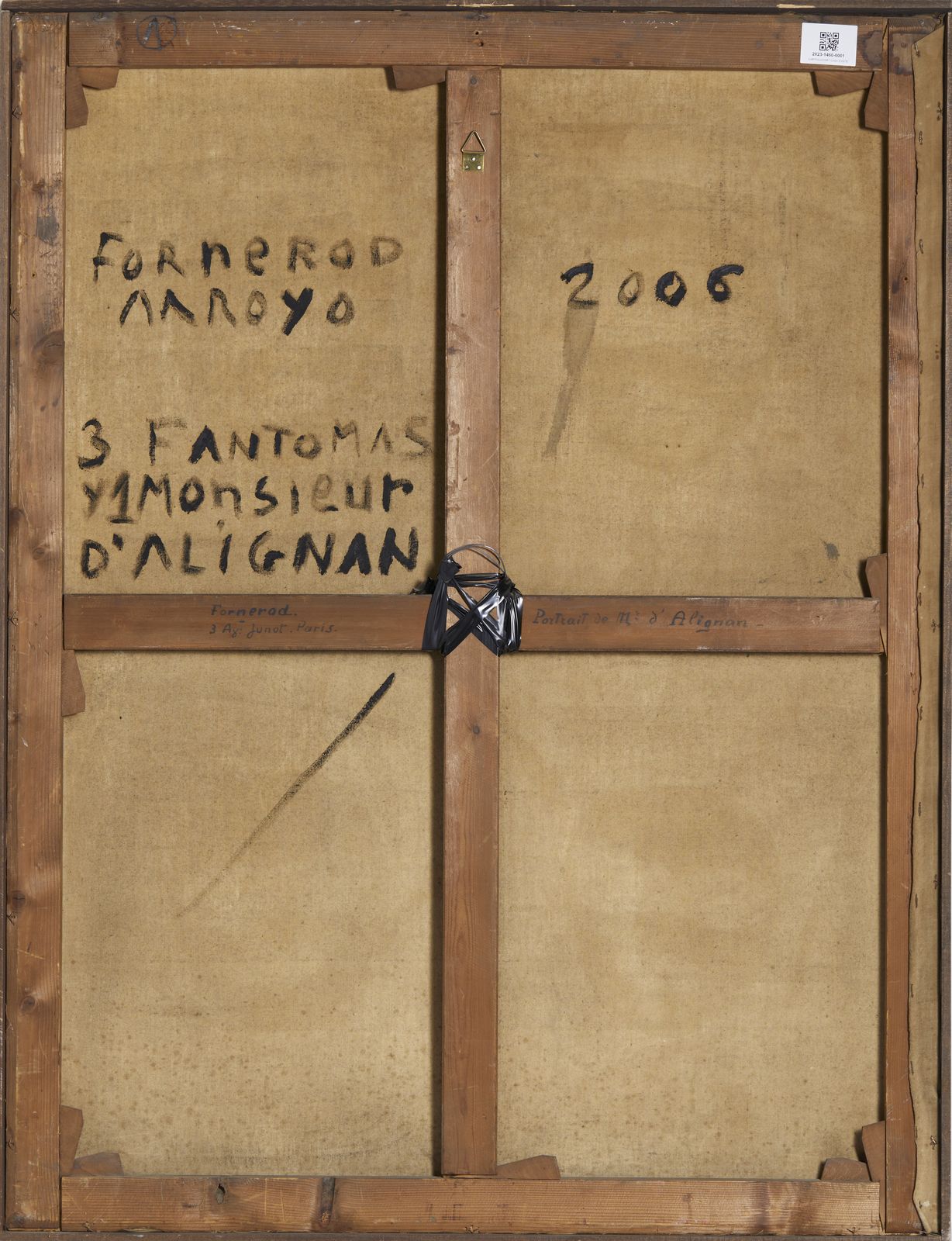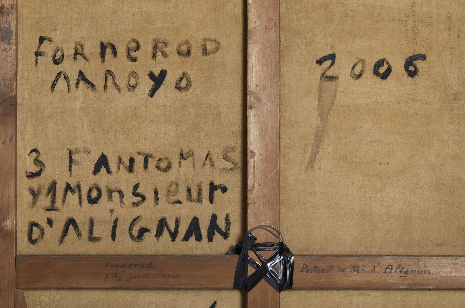 firma e datasul retro: firma, titolo e dataPROVENIENZACollezione Milva BiolcatiCollezione privata, Milano 2007ESPOSIZIONIArroyo. Fantomas all'inizio del XXI secolo, Galleria San Carlo, Milano 2006BIBLIOGRAFIAM. Corgnati, Eduardo Arroyo. Fantomas all'inizio del XXI secolo, Milano 2006, pp. 7-9